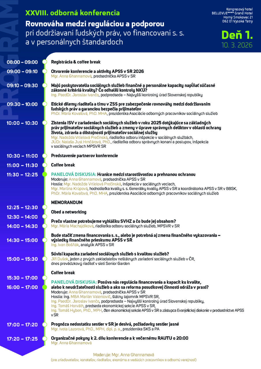 S radosťou vám predstavujeme program pripravovanej konferencie Asociácie poskytovateľov sociálnych služieb v SR. Aj tento rok sme pre vás pripravili odborné prednášky, diskusie a stretnutia s rešpektovanými odborníkmi z praxe, verejnej správy aj partnerských organizácií.
